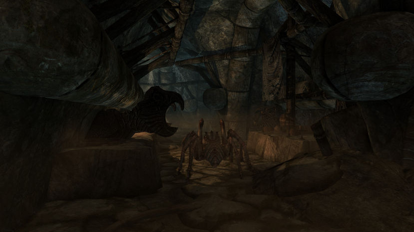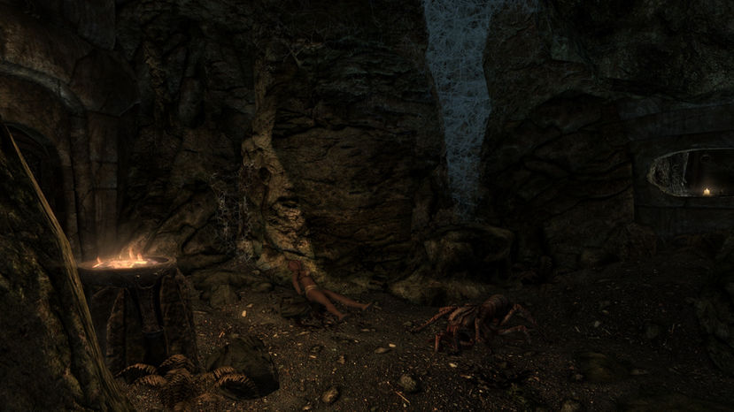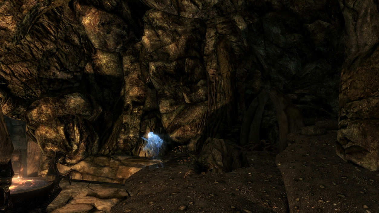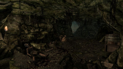 A dark, secluded damp, flooded grotto, at first glance, only home to a few disease infested skeevers, and patches of alchemically rich mushrooms but now, a cave designed to lure a variety of skyrims travelers, scholars, and champions to meet their unfortunate fate at the hands of a mysterious scholar. In fact, the most recent victims, a band of mercenaries, have found their way here yet the stranger, doesn't seem all to interested.