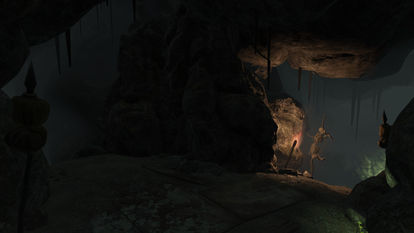 The many swamp folk that claim this place their own sacrifice poor wanderers, such as yourself, and use their blood for a mysterious purpose surrounding the Krivbeknih, an ancient tome with strange malicious powers. Crumbling structures imply this place have been more than a cave. The countless hanging and spiked doll/skull effigies display the insane minds of the swamp folk that inhabit all of Point Lookout.